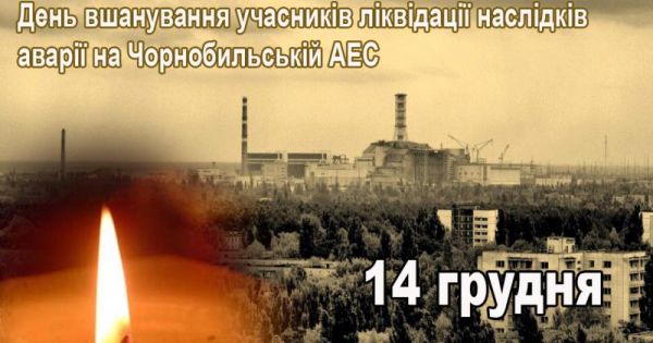 В Україні 14 грудня відзначають День вшанування учасників ліквідації наслідків аварії на Чорнобильській АЕС. Ця пам’ятна дата була затверджена Указом Президента України 10 листопада 2006 року. Саме 14 грудня 1986 року було офіційно завершено будівництво саркофага над зруйнованим енергоблоком Чорнобильської АЕС.
