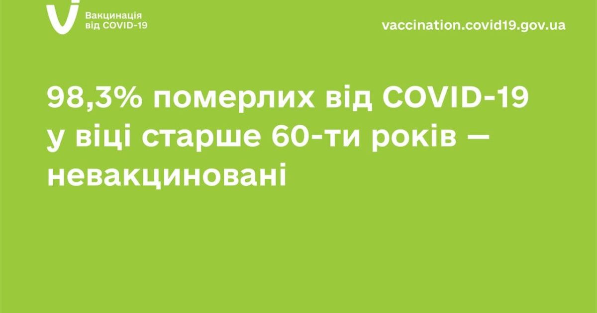 98.3% померлих від COVID-19 у віці старше 60 років — невакциновані, а 97% госпіталізованих з COVID-19 серед цієї вікової групи не мають повного курсу вакцинації.