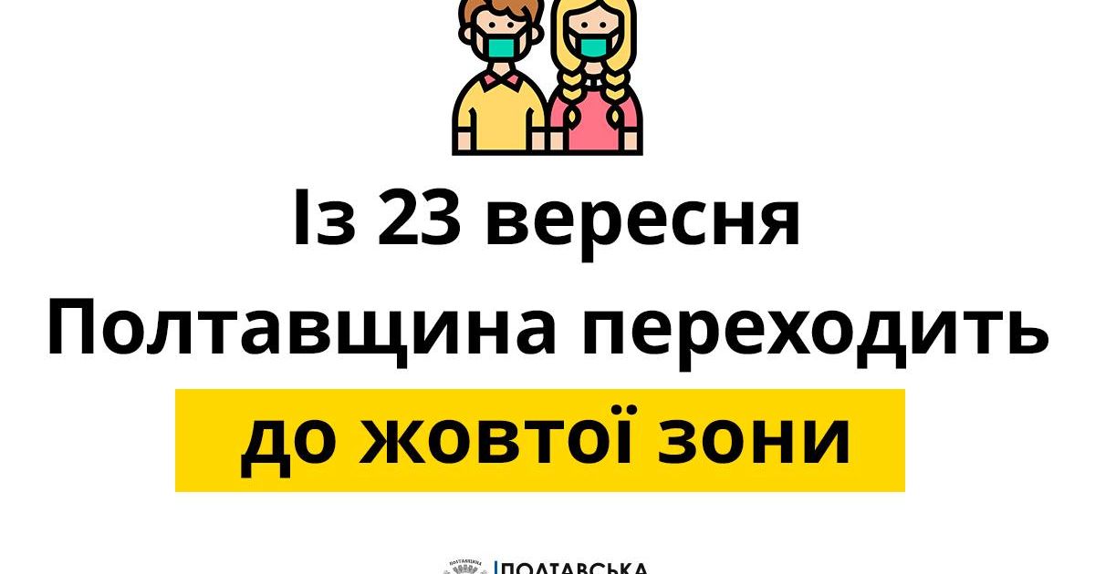 Із 23 вересня Полтавщина, як і вся Україна, переходить до жовтої зони