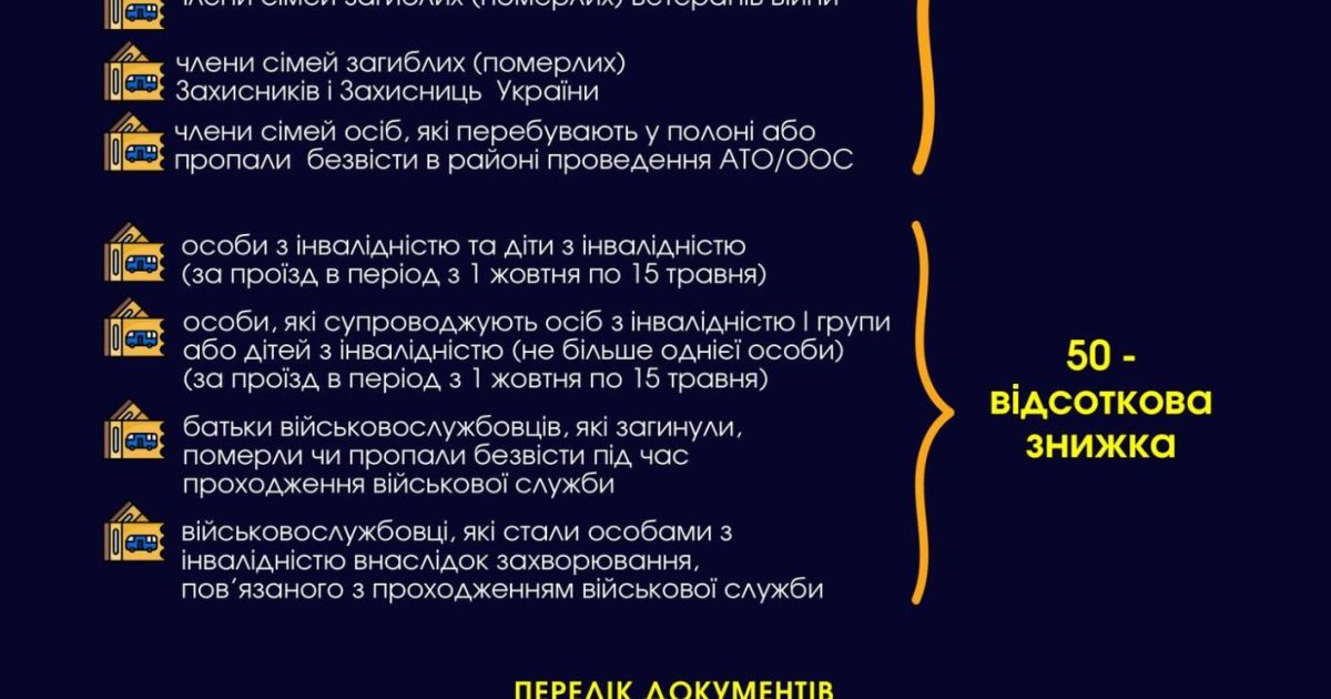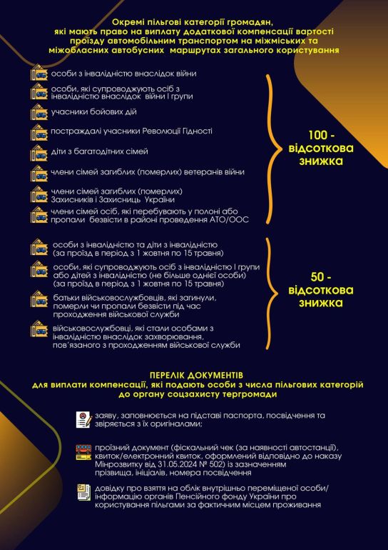 Наведена інфографіка містить перелік пільгових категорій, розмірів