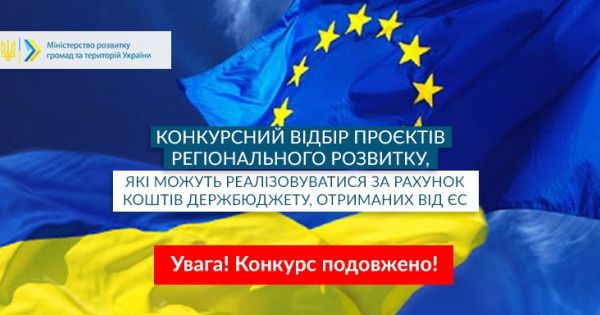Конкурсний відбір проєктів регіонального розвитку, що фінансуватимуться за кошти ЄС, продовжено до 3 листопада