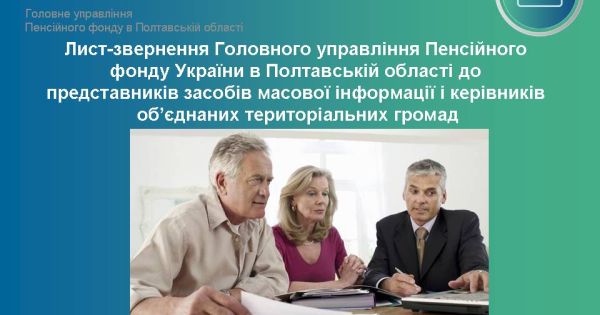 Лист-звернення Головного управління Пенсійного фонду України в Полтавській області до представників засобів масової інформації і керівників об’єднаних територіальних громад