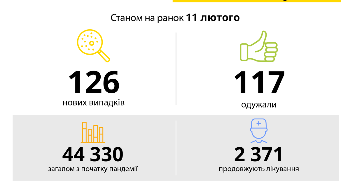 Одужали 41 026 (+117) жителів області, продовжує лікування 2 371 людина, зокрема 96 дітей.