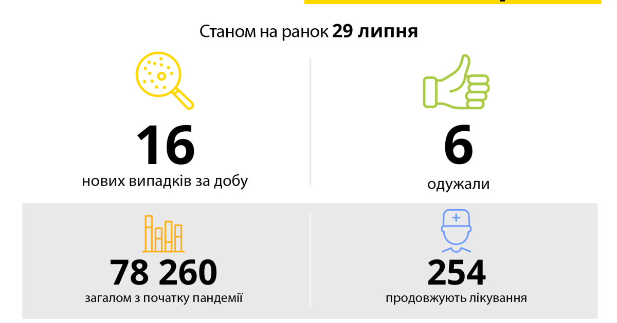 Одужали 76134 (+6) жителі області, продовжують лікування 254 людини. Усього зареєстровано 1872 летальні випади.