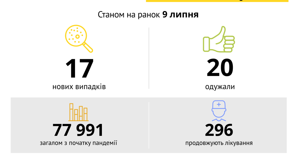 Одужав 75831 (+20) житель області, продовжують лікування 296 людей.