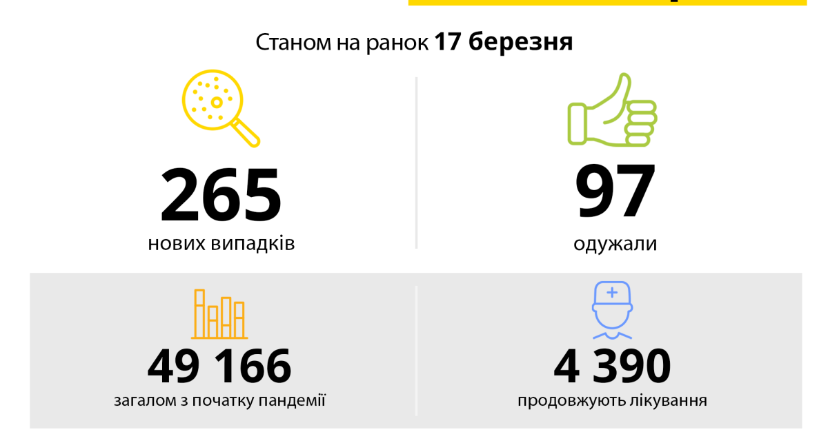 На Полтавщині за минулу добу зареєстровано 265 нових випадків захворювання на COVID-19