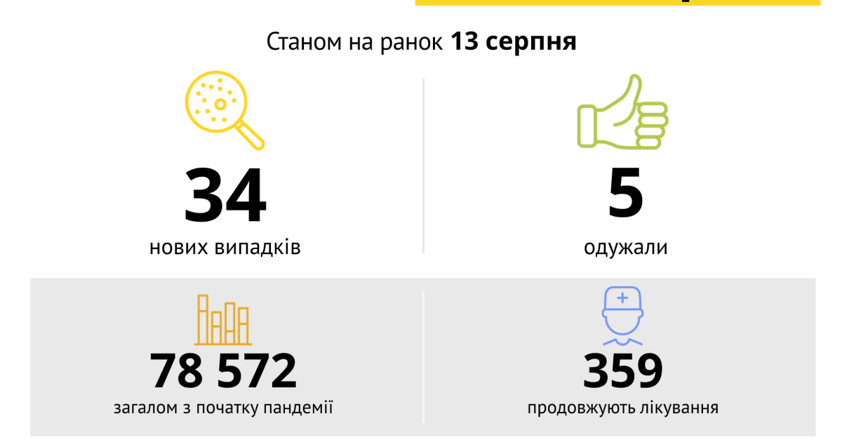 Одужали 76337 (+5) жителів області, продовжують лікування 359 людей. Усього зареєстровано 1876 летальних випадів, нових випадків – 1 (Горішні Плавні).