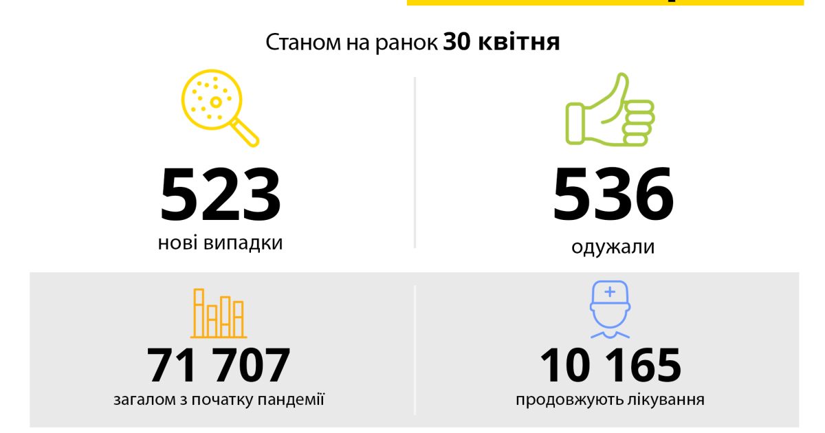 За минулу добу зареєстровано нових випадків – 523.