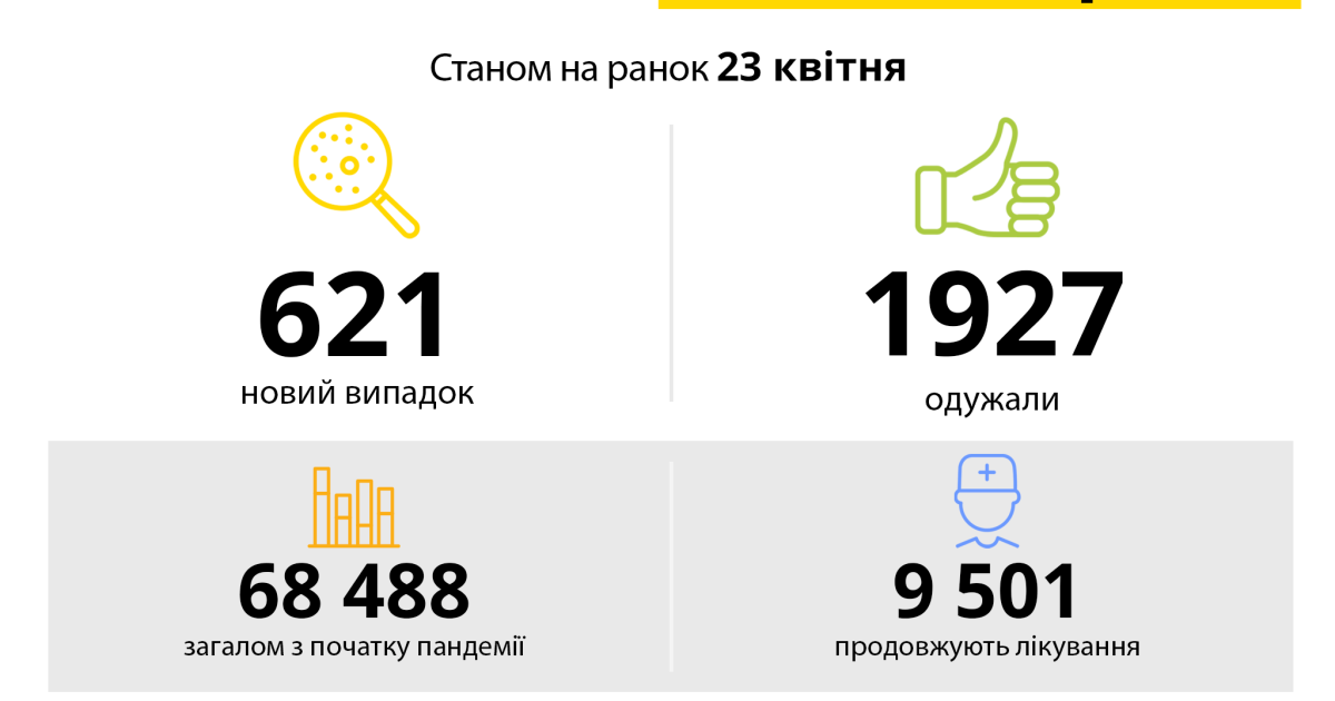 За минулу добу зареєстровано нових випадків – 621.