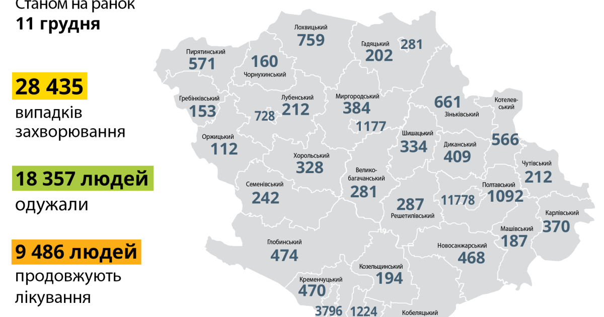 Миргородський район – 384 (17 нових випадків),