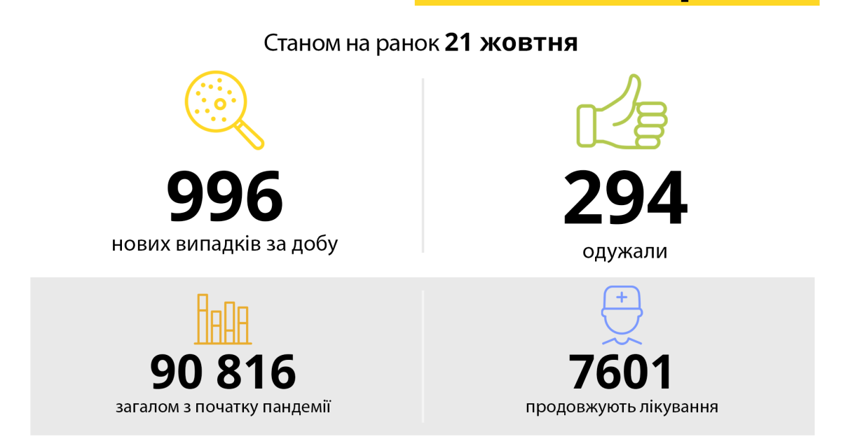 За минулу добу зареєстровано нових випадків – 996.