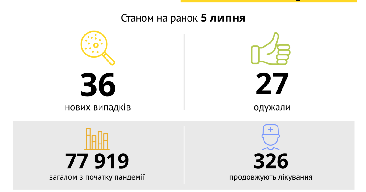 Одужали 75732 (+27) жителя області, продовжують лікування 326 людей.