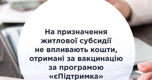 На призначення житлової субсидії не впливають кошти, отримані за вакцинацію за програмою «єПідтримка»