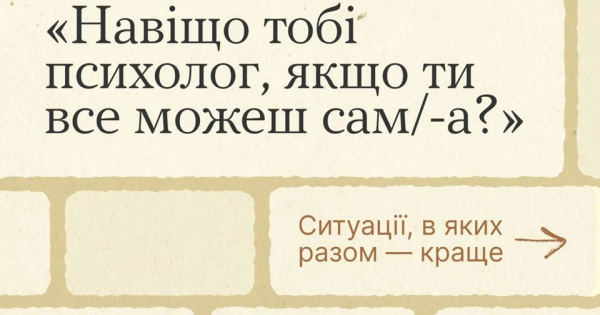 Але психолог буде поруч і підтримає: коли ти зайдеш у глухий кут, слова афірмацій перестануть діяти, а всі книжки із саморозвитку будуть прочитані.
