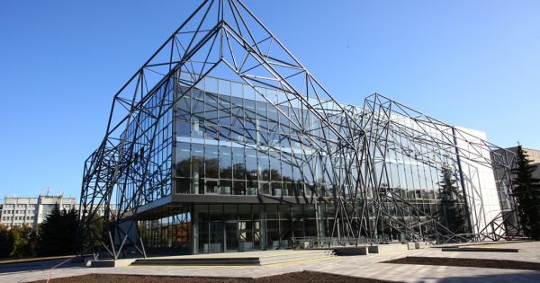 Це футуристична будівля полтавського ЦНАПу, яка має три поверхи загальною площею 2000 квадратних метрів.