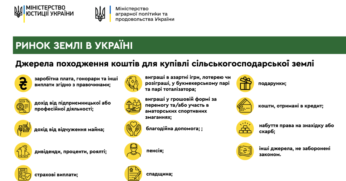 Джерела походження коштів для купівлі сільськогосподарської землі