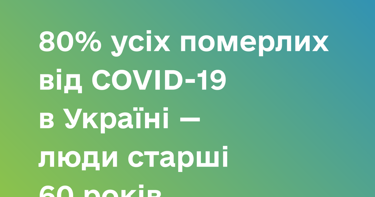 Понад 80% усіх померлих від COVID-19 в Україні – це люди старші 60 років. Так, станом на 14 серпня 2021 від коронавірусної хвороби померло 53 255 осіб, з них 43 566 у віці 60+.