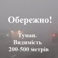 За повідомленням Полтавського обласного центру з гідрометеорології вночі та вранці 15 грудня по Полтавській області та м. Полтава очікується туман, видимість 200-500 метрів. (1 рівень небезпечності - жовтий)