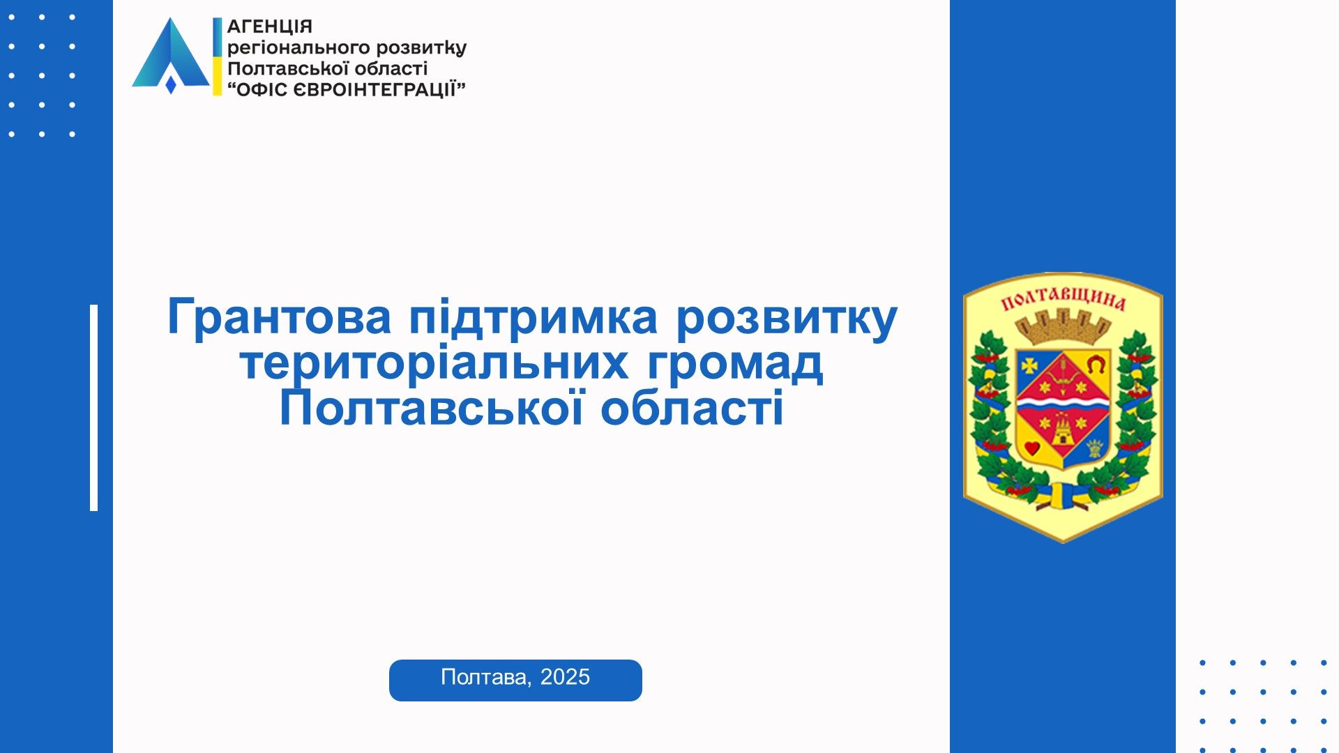 Агенція регіонального розвитку Полтавської області «Офіс євроінтеграції» продовжує активну роботу з підтримки та посилення спроможності територіальних громад регіону. 5 грудня 2025 року, напередодні Дня місцевого самоврядування, відбувся вебінар на тему «Грантова підтримка розвитку територіальних громад Полтавської області».