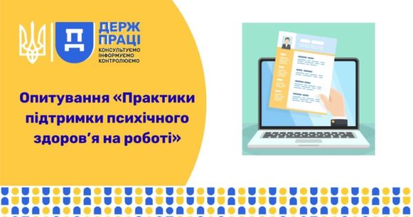 Державна служба України з питань праці (Держпраці) спільно з Координаційним центром з психічного здоров’я Кабінету Міністрів України , проводять опитування серед роботодавців щодо практик підтримки психічного здоров’я працівників на роботі. Дослідження відбувається у межах реалізації Всеукраїнської програми ментального здоров’я «Ти як?» – ініціативи першої леді України Олени Зеленської.