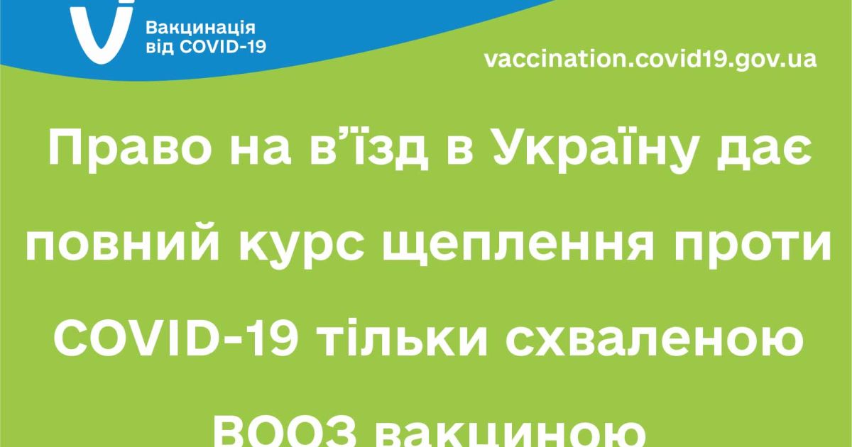 Право на в’їзд в Україну дає повний курс щеплення проти COVID-19 тільки схваленою ВООЗ вакциною