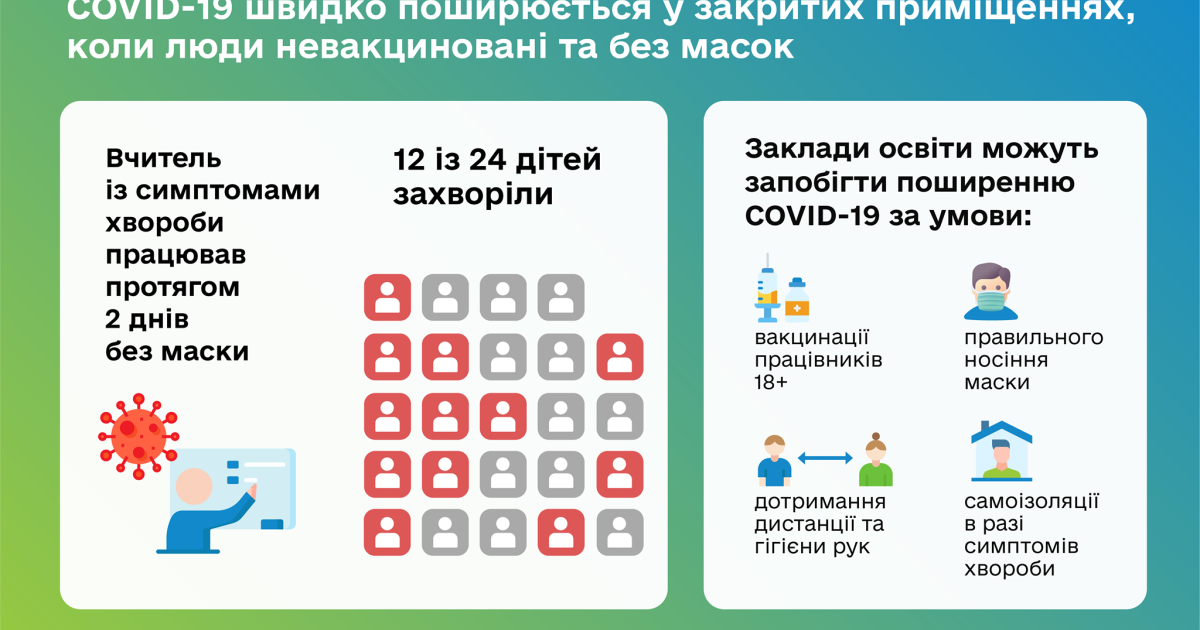Детальніше про випадок в американській школі у звіті Центрів з контролю та профілактики захворювань у США (C.D.C.): bit.ly/3kFHpZi.