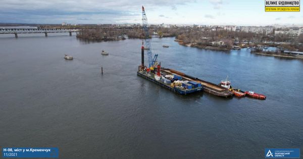 У межах програми Президента України Володимира Зеленського «Велике будівництво» продовжується будівництво мосту через річку Дніпро у м.Кременчук.
