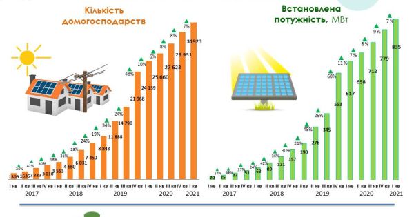 Таким чином, загальна кількість сімей, які генерують і споживають електроенергію з енергії сонця, зросла на 7% і сягнула майже 32 тисяч. Сумарна потужність встановлених ними СЕС – 835 МВт.