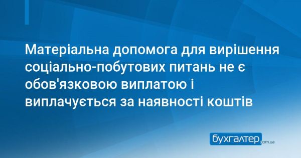 Матеріальна допомога для вирішення соціально-побутових питань не є обов’язковою виплатою і виплачується за наявності коштів.