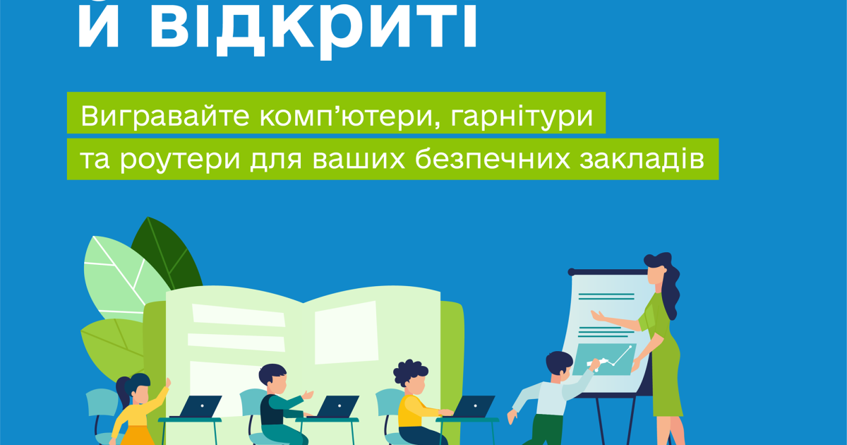 На вас чекають 3 суперпризи: набори з 10 комп’ютерів, 10 гарнітур та 10 роутерів для кожної школи-переможниці.