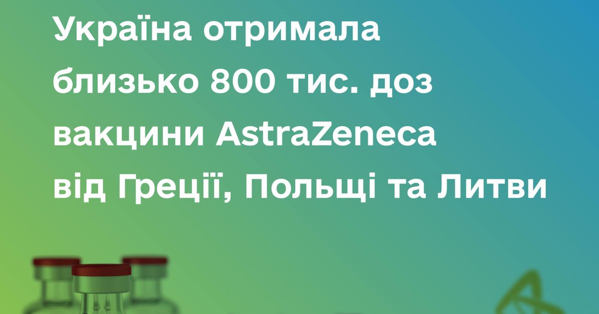 Україна отримала 100 000 доз вакцини AstraZeneca