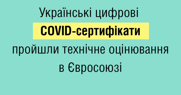 Українські цифрові COVID-сертифікати успішно пройшли технічне оцінювання в Євросоюзі.