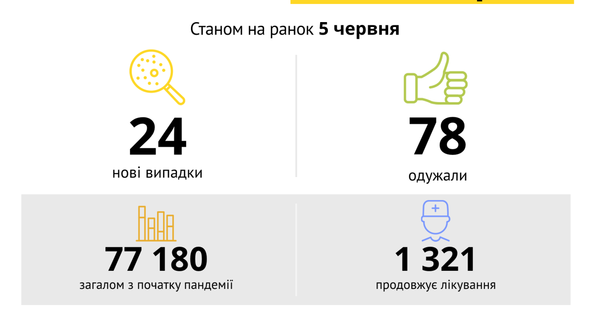 Одужали 74050 (+78) жителів області, продовжує лікування 1321 людина.