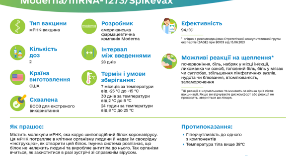 Вже 255 290 українців отримали безпечні й ефективні щеплення вакциною Moderna. Нею щеплюють організовані колективи та професійні групи, вона доступна в центрах масової вакцинації.