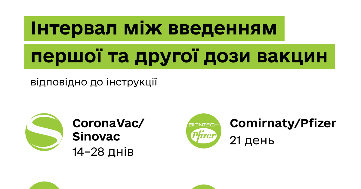 ♦️ Якщо мРНК-вакцина того самого виробника недоступна, для другого щеплення можна використати вакцину на платформі мРНК іншого виробника. Інтервал між першою і другою дозами становитиме 28 днів.