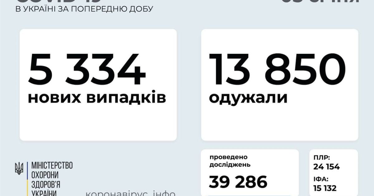 В Україні за добу діагностували 5 334 нових випадків захворювань на COVID-19