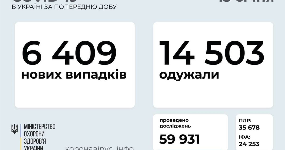 Також за минулу добу госпіталізовано – 2 564 особи; летальних випадків – 195; одужало – 14 503 особи; здійснено тестувань за добу 59 931 (зокрема методом ПЛР 35 678, методом ІФА – 24 253).