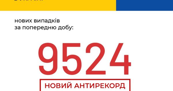 МОЗ повідомляє, що за минулу добу в Україні зафіксовано 9524 нових випадки коронавірусної хвороби COVID-19 (з них дітей – 313, медпрацівників – 408).