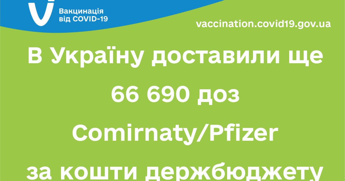 В Україну доставили ще 66 690 доз Comirnaty/Pfizer за кошти державного бюджету