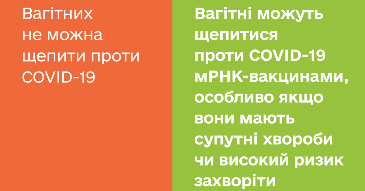Під час розробки вакцин їх тестували на вагітних тваринах, але не на жінках. Втім, в США з грудня 2020 до кінця лютого 2021 проходило дослідження, в якому використали дані понад 35 000 вагітних, яких щепили проти COVID-19 мРНК-вакцинами. Його результати свідчать про те, що поки немає жодних підстав вважати, що вакцини можуть нашкодити вагітній або ембріону (bit.ly/vagitni).