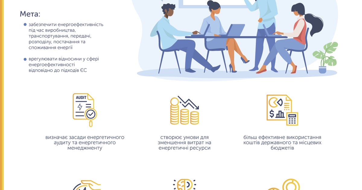 Україна має одну з найбільш енергоємних економік в світі. Проте майже половина виробленої та імпортованої енергії втрачається при її перетворенні та транспортуванні до фінального споживача. Законопроєкт про енергетичну ефективність встановлює правові, економічні та організаційні засади для реалізації заходів з енергоефективності під час виробництва, транспортування, передачі, розподілу, постачання та споживання енергії.
