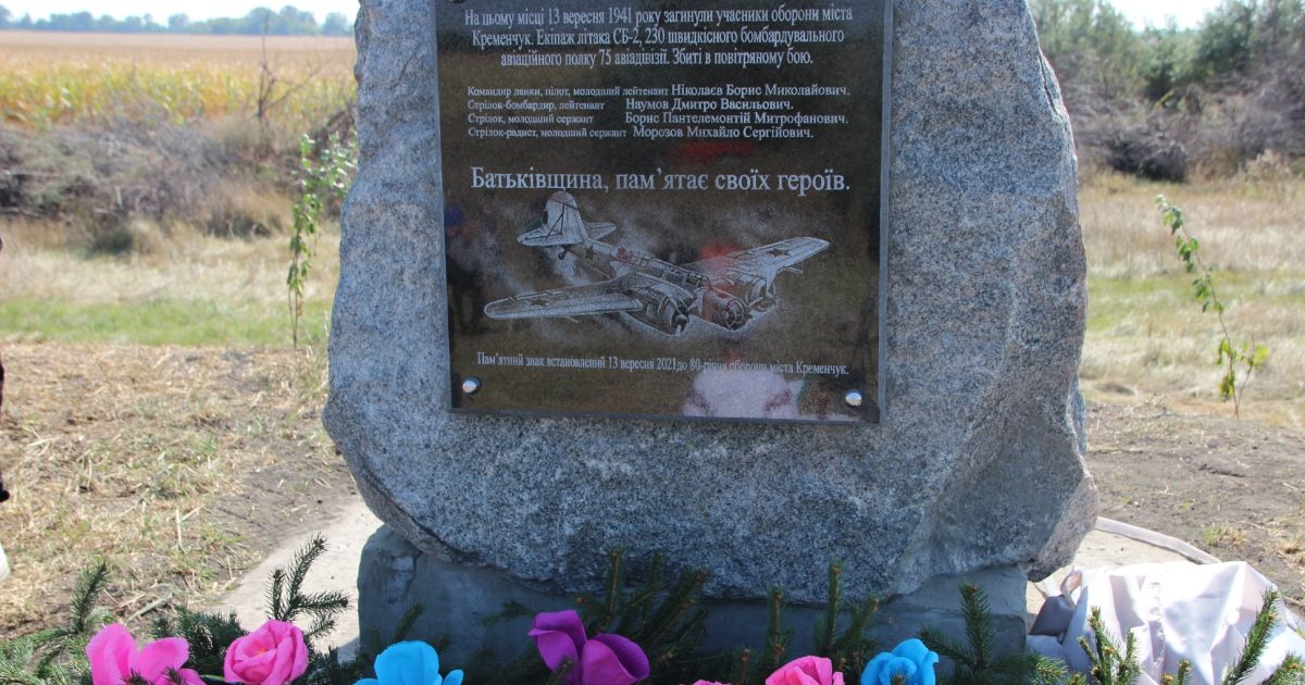 13 вересня 2021 року поблизу села Лукашівка відбулося відкриття пам'ятного знаку загиблому екіпажу літака СБ-2: командир ланки, пілот молодший лейтенант Ніколаєв Борис Миколайович, стрілок-бомбардувальник, лейтенант Наумов Дмитро Васильович, стрілок, молодший сержант Борис Пантелемонтій Митрофанович, стрілок- радист, молодший сержант Морозов Михайло Сергійович, які віддали своє життя за наше мирне небо над головою. Вони загинули 13 вересня 1941 року в повітряному бою і є учасниками оборони м. Кременчука.