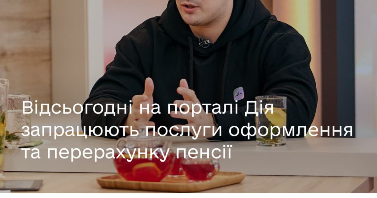 «Більше як мільйон українців щороку оформлюють призначення чи перерахунок пенсії. Для того, щоб оформити виплату від держави, бабусям та дідусям треба було ходити по держорганах, стояти в чергах, що особливо наражало їхнє здоров’я на небезпеку під час пандемії. Тепер вони зможуть зробити це, не виходячи з дому, на порталі Дія. Потрібно заповнити анкету, завантажити необхідні документи та надіслати заявку — і все», — зазначив Федоров.