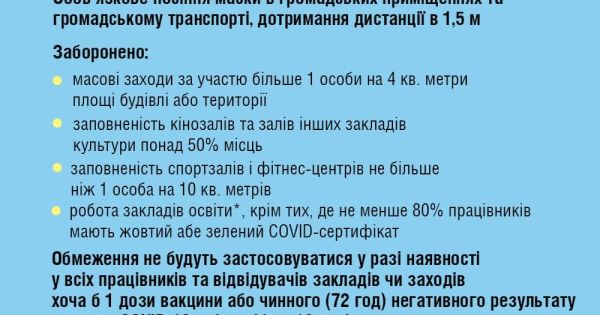 Детальніше про обмеження жовтого рівня епіднебезпеки читайте за посиланням: https://cutt.ly/WElk43t