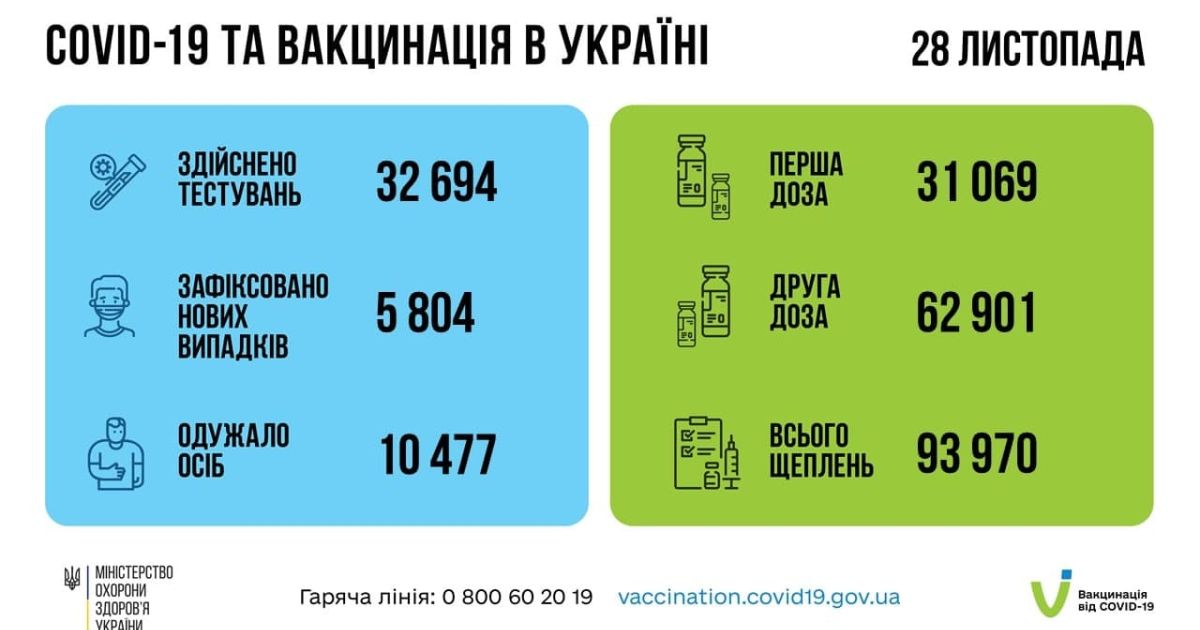 ◾️ зафіксовано 5 804 нових підтверджених випадків коронавірусної хвороби COVID-19 (з них дітей – 530, медпрацівників – 72);