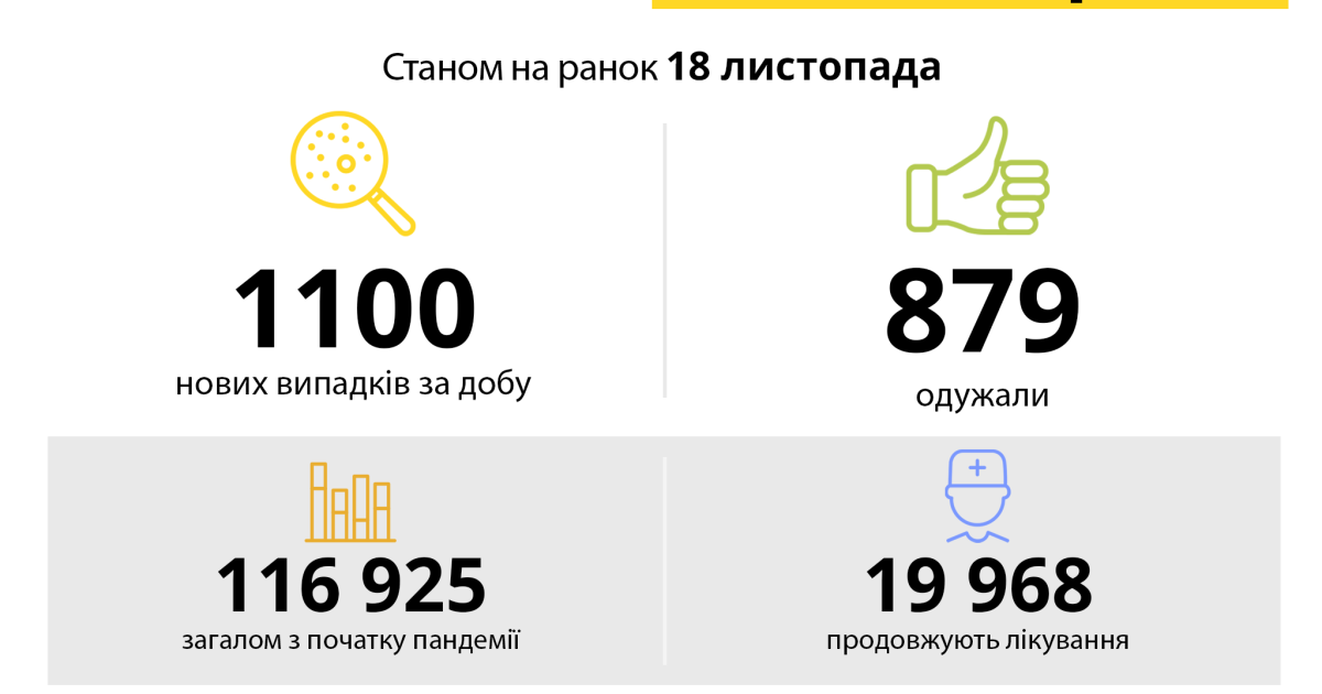 Одужали 94 111 жителів області (+879). Продовжують лікування 19 968 осіб.