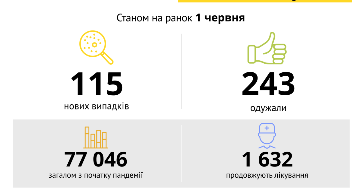 Одужали 73 619 (+243) жителів області, продовжують лікування 1632 людини.