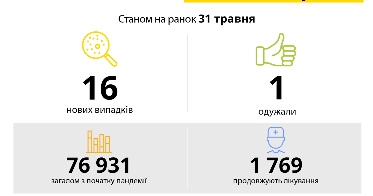 Одужали 73376 (+1) жителів області, продовжують лікування 1769 людей.