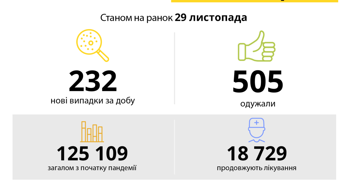Одужали 103 212 жителів області (+505). Продовжують лікування 18 729 особа.