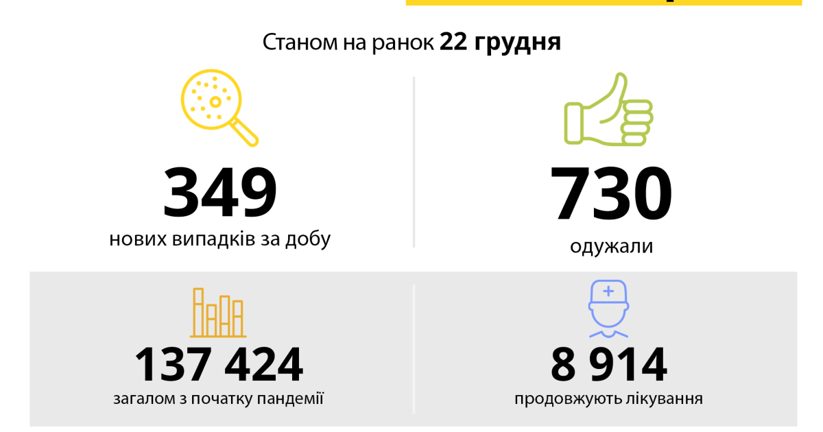 За минулу добу зареєстровано нових випадків – 349.